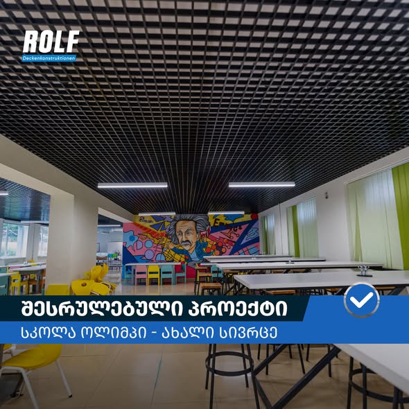 ROLF-ის კიდევ ერთი წარმატებული პროექტი „ელვარე“ 📍 თბილისი თანამედროვე და ინოვაციური შოურუმი, რომელიც აერთიანებს ტექნოლოგიურ განვითარებას, ესთეტიკას და ფუნქციურ სივრცის დაგეგმვას. „ელვარე“-ს შოურუმი აღჭურვილია ROLF-ის უჯრედული გრილიატოს ჭერის სისტემით, რომელიც იდეალურად ერგება ინდუსტრიულ და საგამოფენო გარემოს მოთხოვნებს. 🔹 გამოყენებული ჭერის ტიპი: ROLF Premium Grilliato Cat "A" 100x100, RAL9003 🔹 ფუნქციური უპირატესობა: უჯრედული გრილიატო უზრუნველყოფს [...]