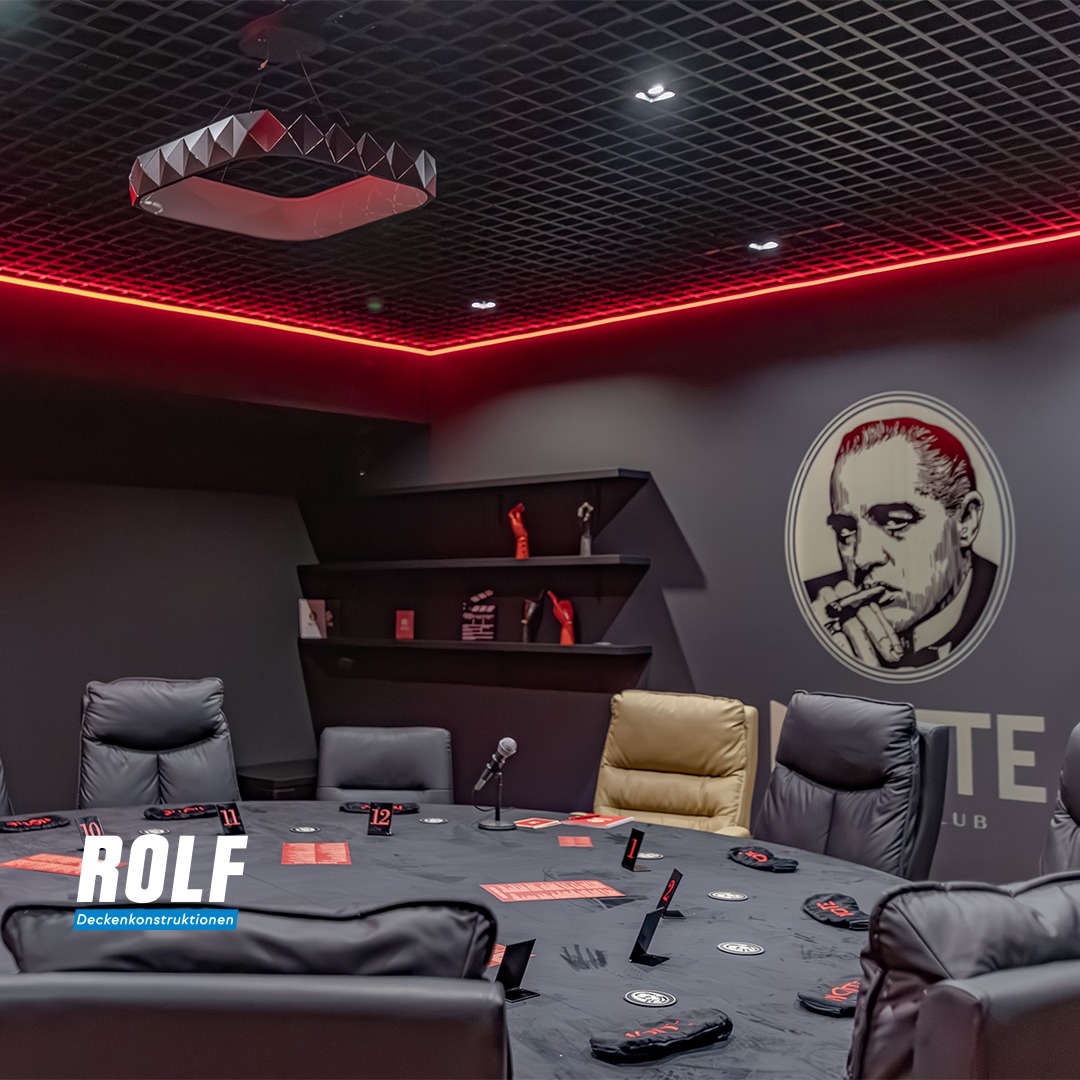 Потолочная система ROLF способствует эффективному распределению световых эффектов и создает комфортную атмосферу для игр и отдыха, что особенно важно для этого пространства.