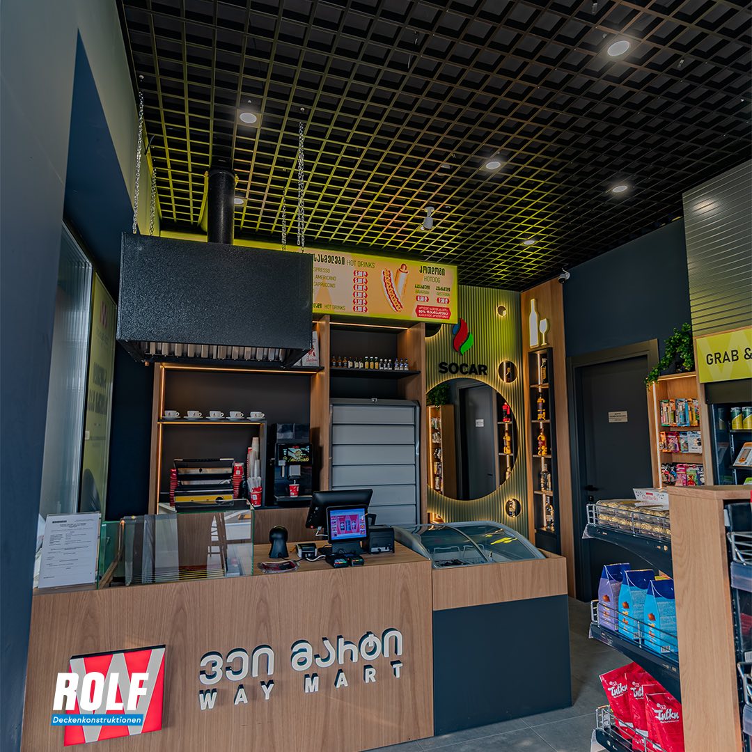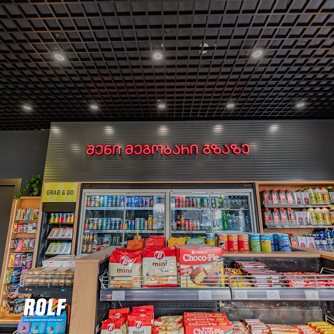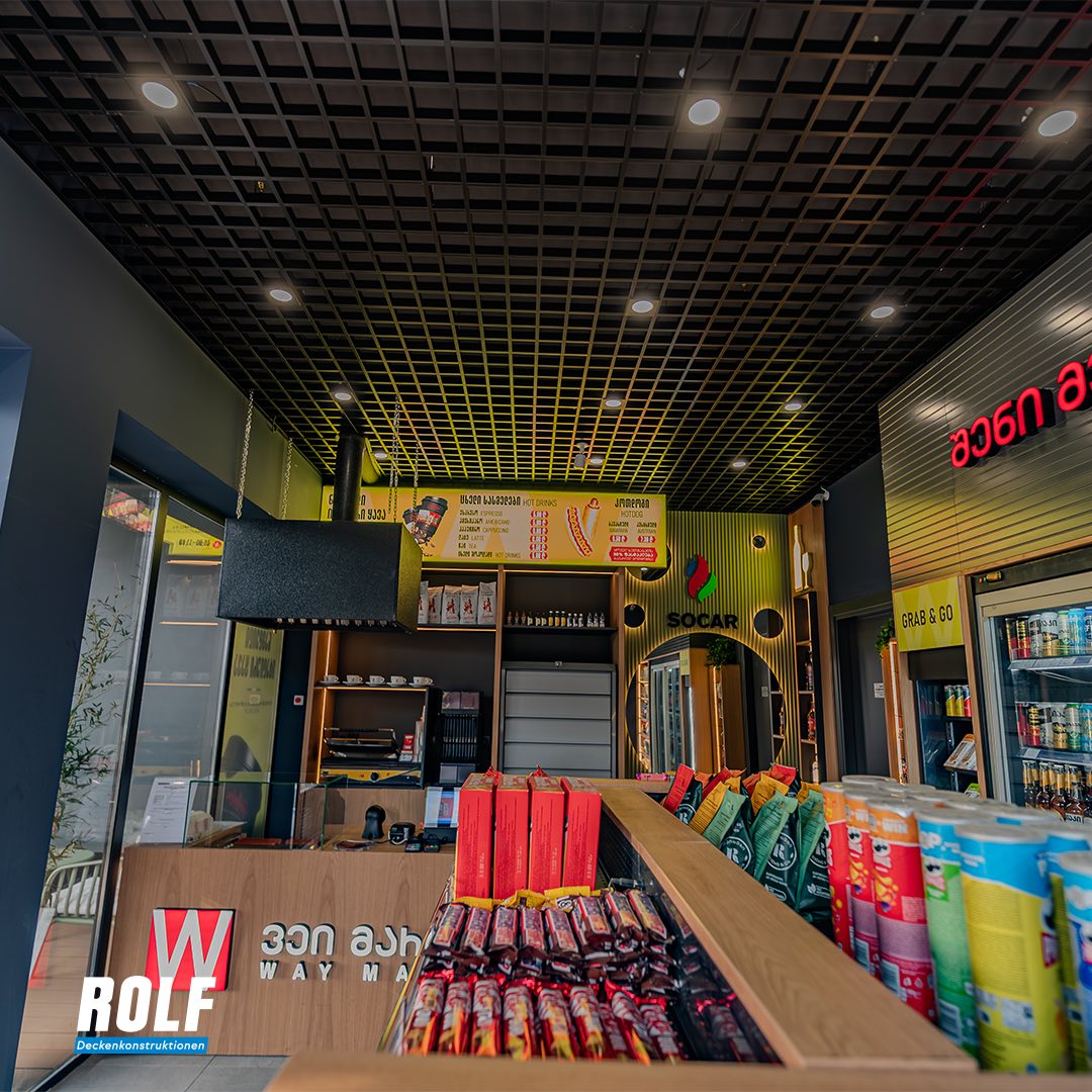 ვეიმარტის სავაჭრო სივრცეში განხორციელდა ROLF-ის უჯრედული გრილიატოს ჭერის ROLF Grilliato 120×120, სისტემის მონტაჟი.