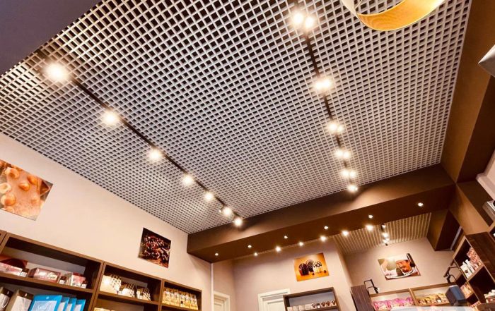 კიდევ ერთი დასრულებული პროექტი ROLF-ისგან. GeoConditer-ის საფირმო მაღაზია, თბილისი გრილიატოს მეტალის ჭერი ROLF 75x75 უჯრედით, RAL9003, Cat. [...]